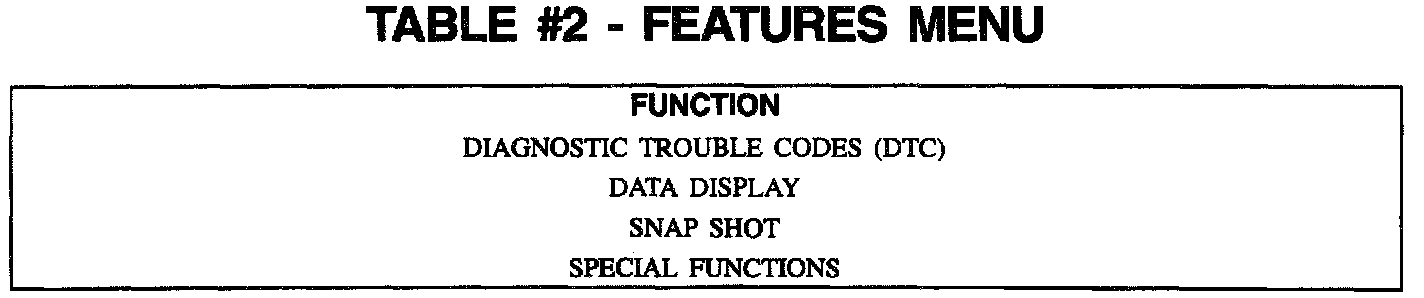 Table #2 Features Menu: