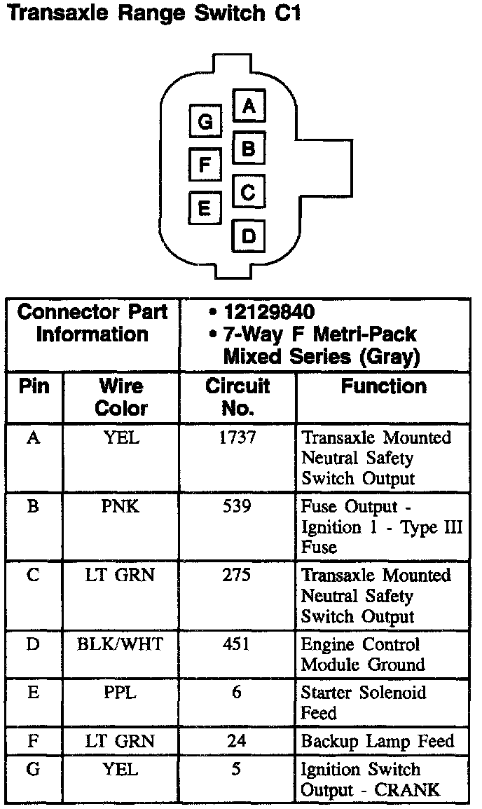 Transaxle Range Switch: C1: