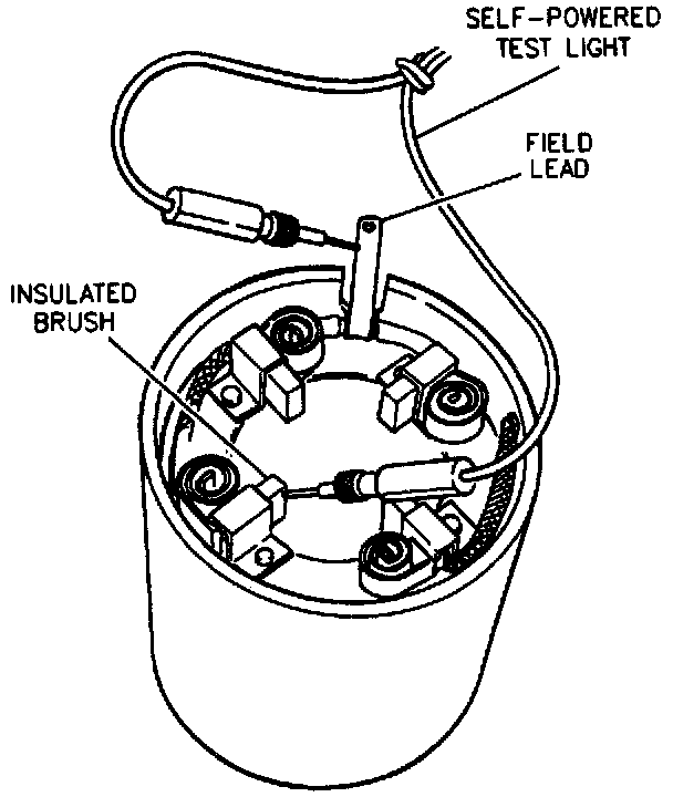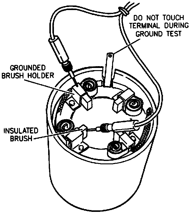 ^ Using a self-powered test lamp, place one lead on the grounded brush holder and the other lead on either insulated brush. If the lamp lights, a grounded series coil is indicated and must be repaired or replaced.