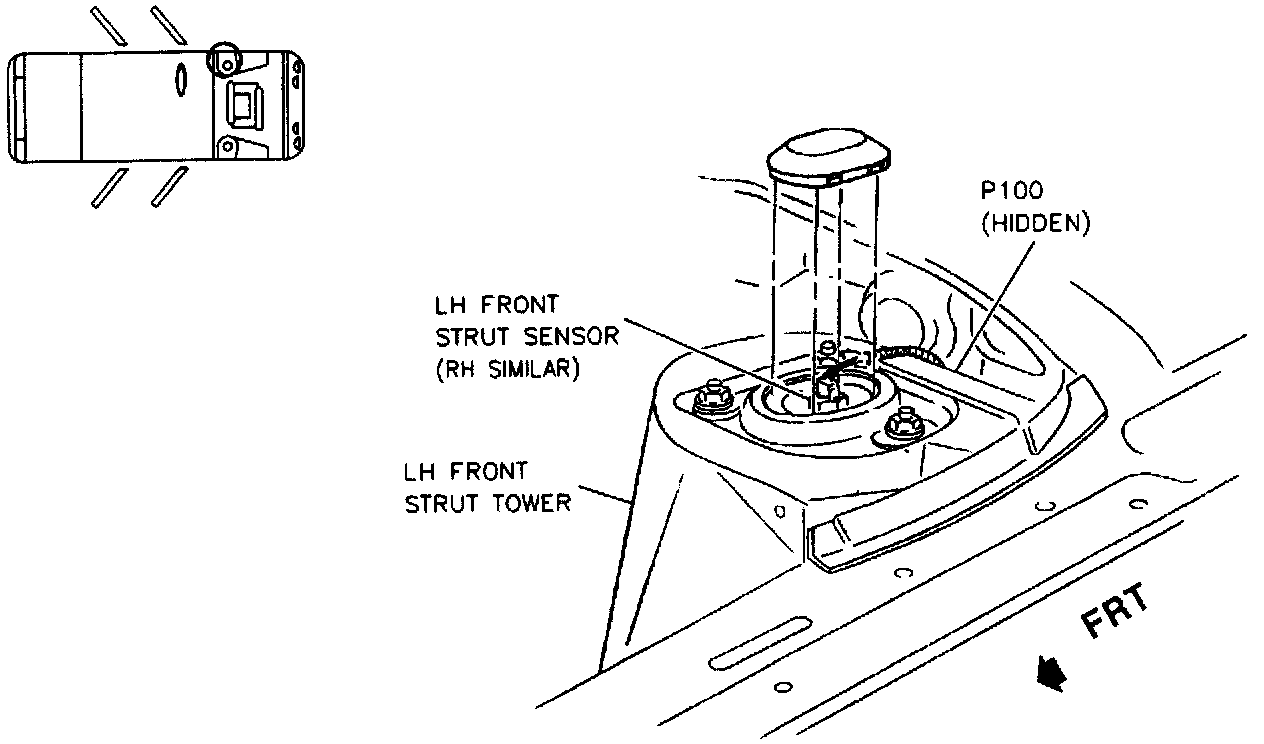 LH Side Of Engine Compartment, Top Of Strut Tower: