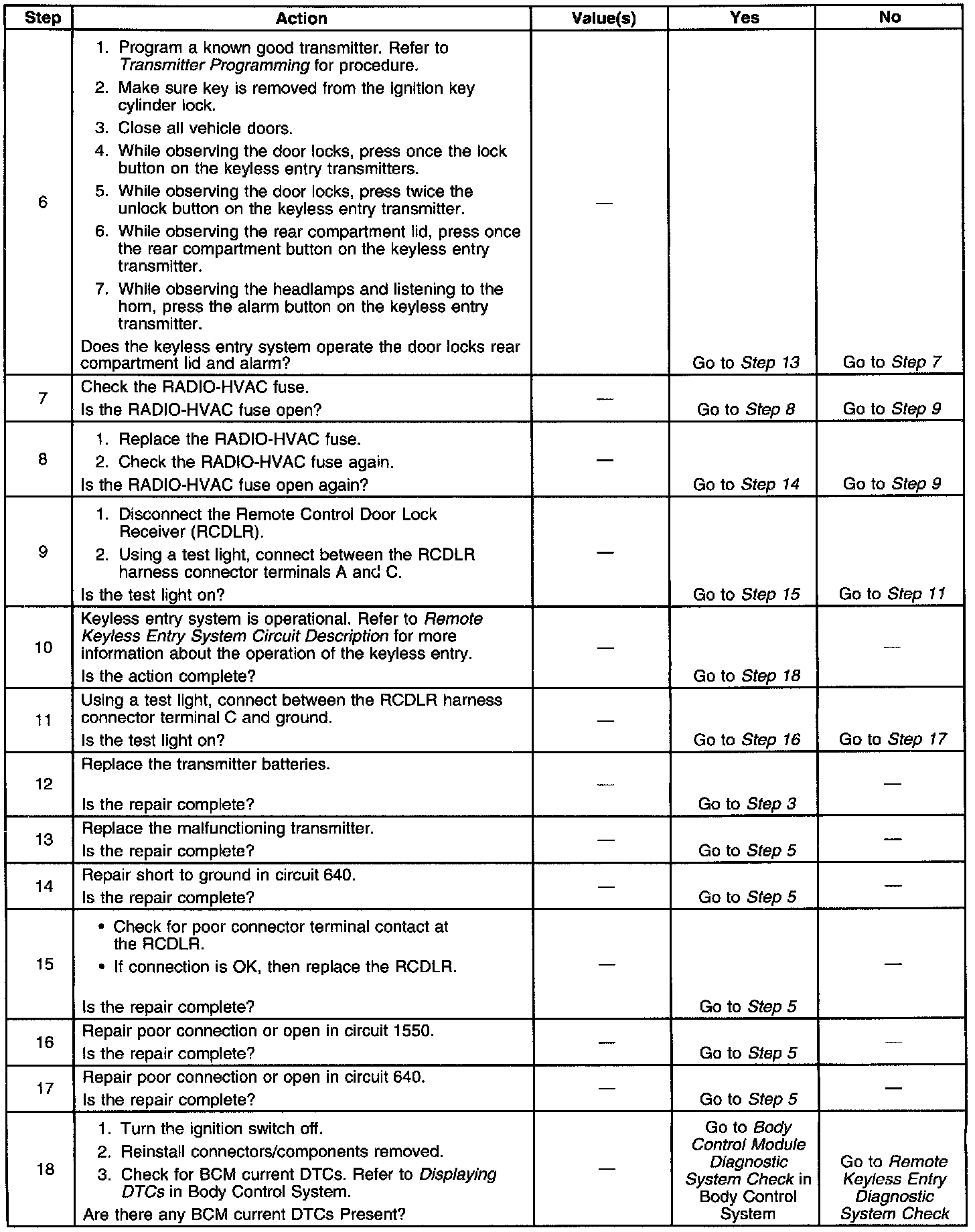Remote Keyless Entry System Inoperative: All Functions (Part 2 Of 2):