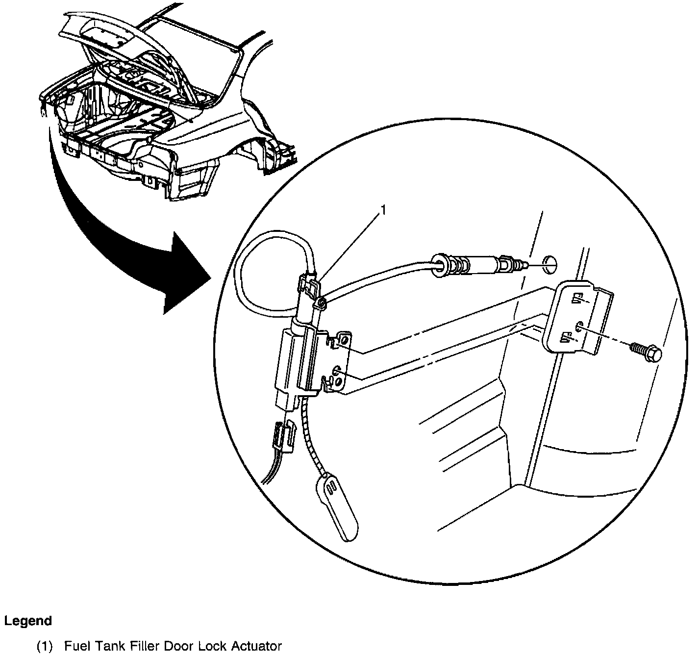 Fuel Tank Filler Door Lock Actuator: LH Side Of Rear Compartment:
