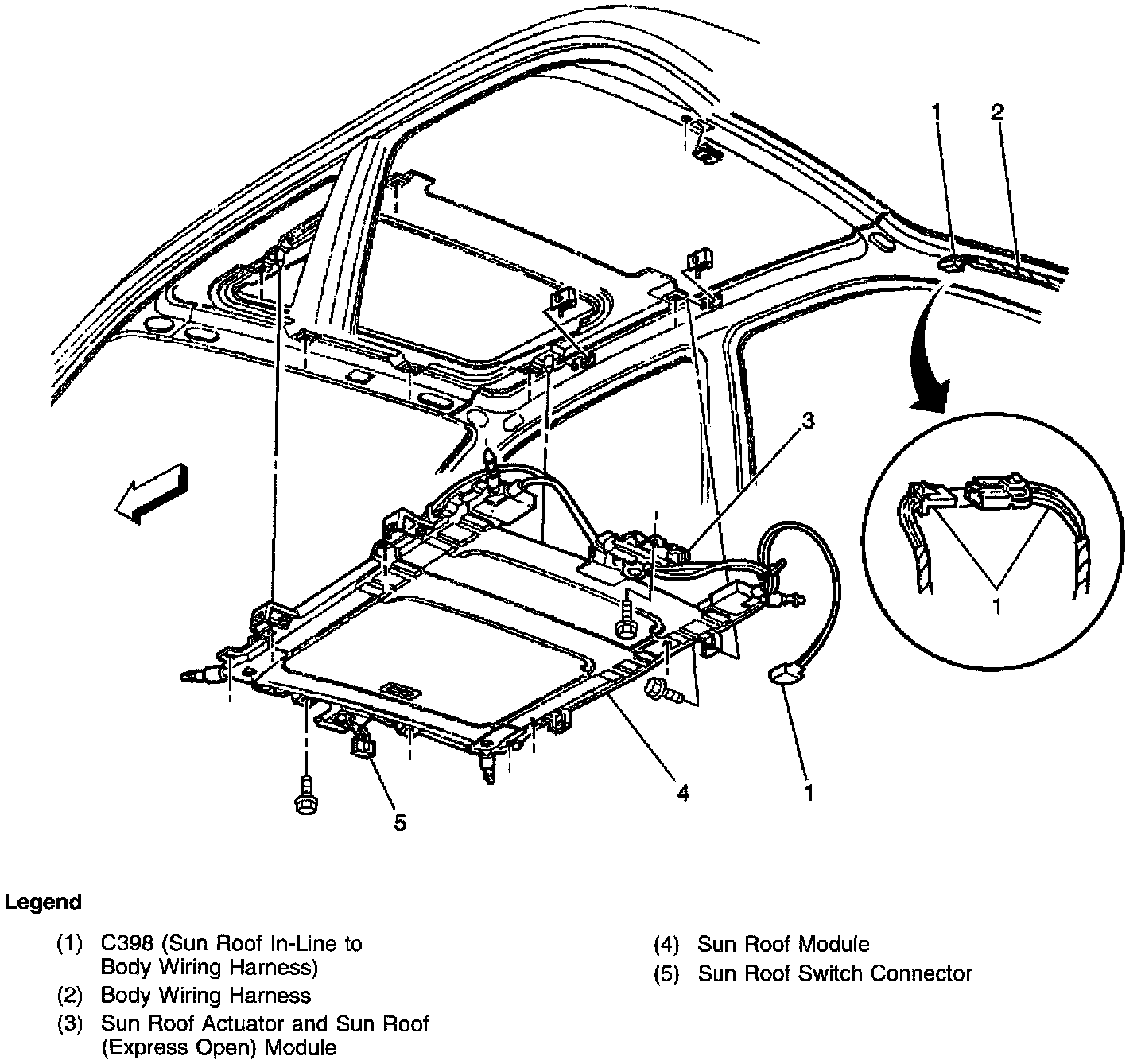 RH rear corner of sunroof module (w/ RPO CF5 Only)