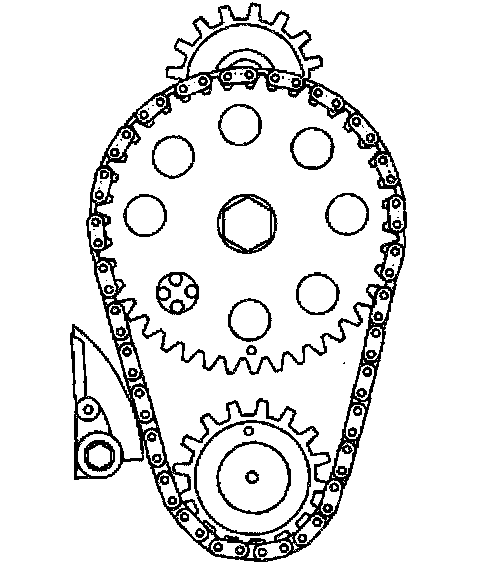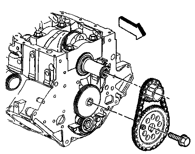 2. Install the timing chain, the crankshaft sprocket, and the camshaft sprocket.