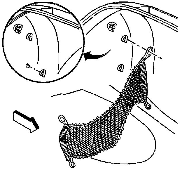 10. Install the rear compartment convenience net, if equipped, to the plastic wingnut retainers.