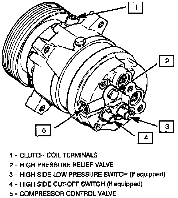 2. Lubricate O-ring of new pressure relief valve and O-ring assembly with new 525 viscosity refrigerant oil. Install new valve and torque in place, 9.0 N.m (6.1 lbs. ft.).