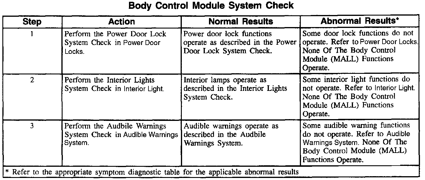 Body Control Module System Check: