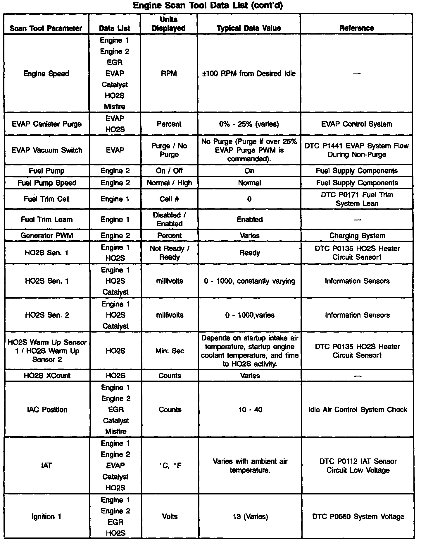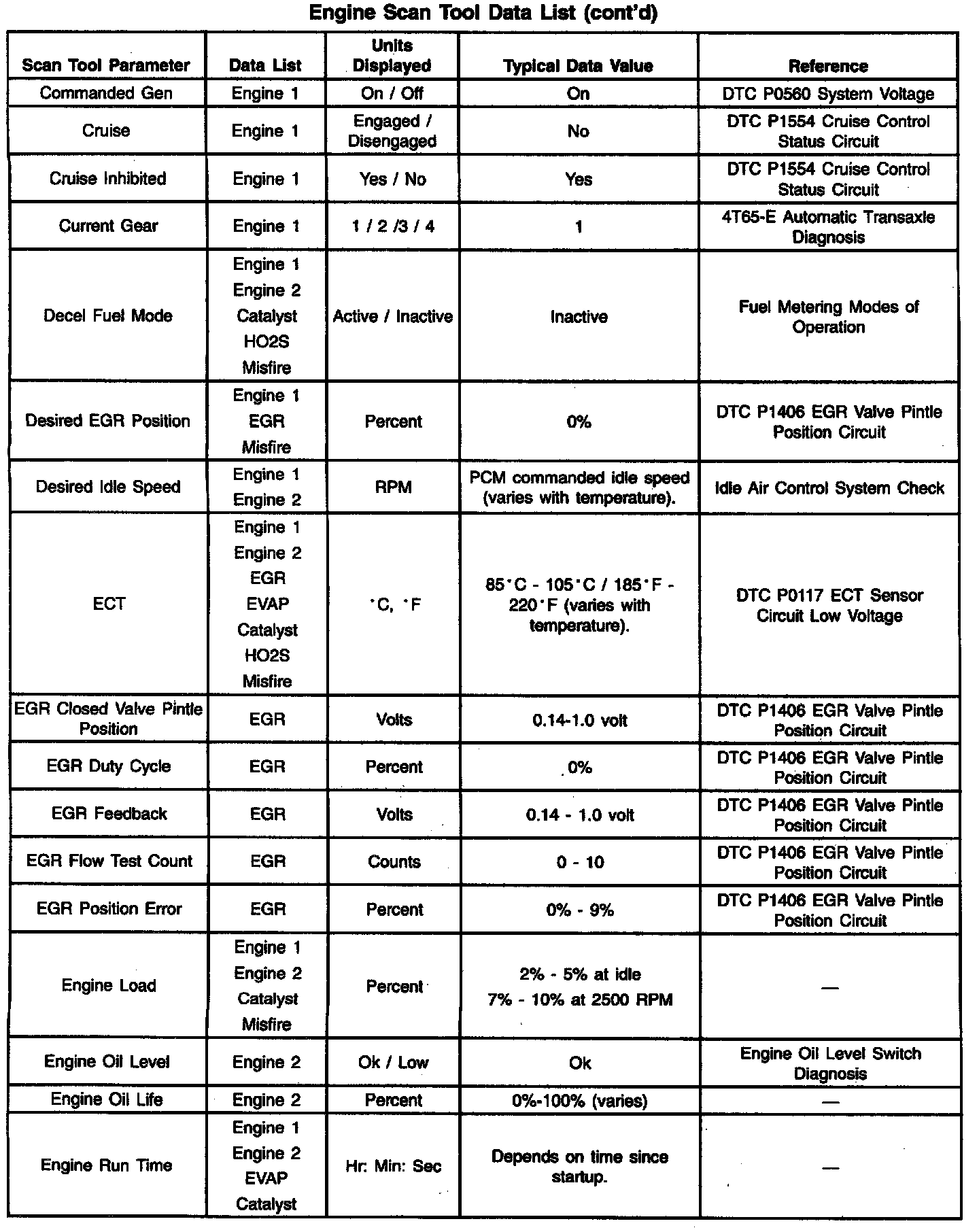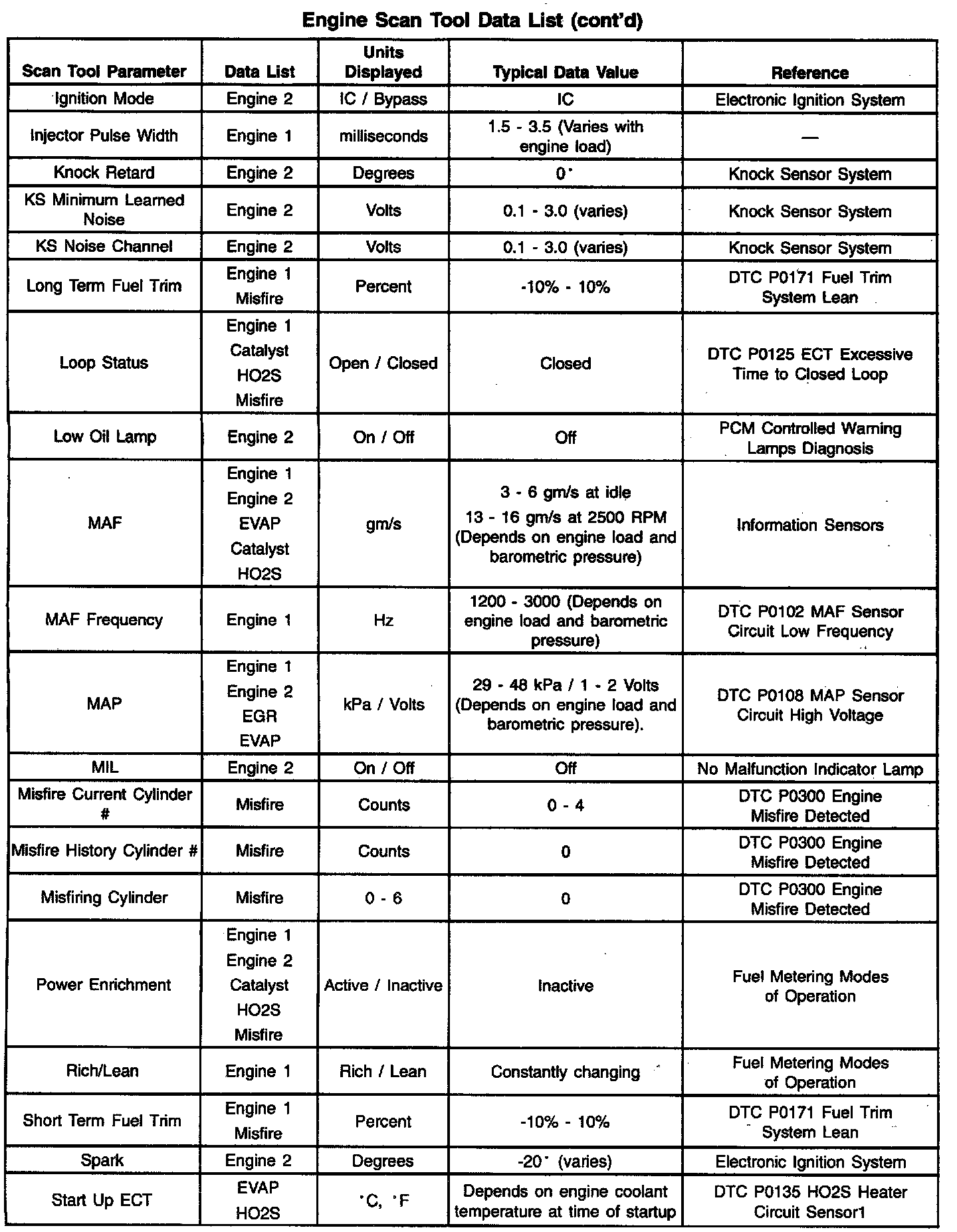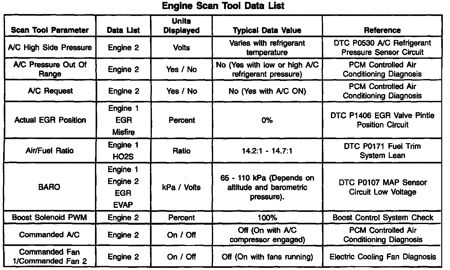 Engine Scan Tool Data List: