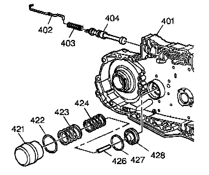 2. Remove the cylinder (421) and the seal (422) for the 3-4 accumulator piston.