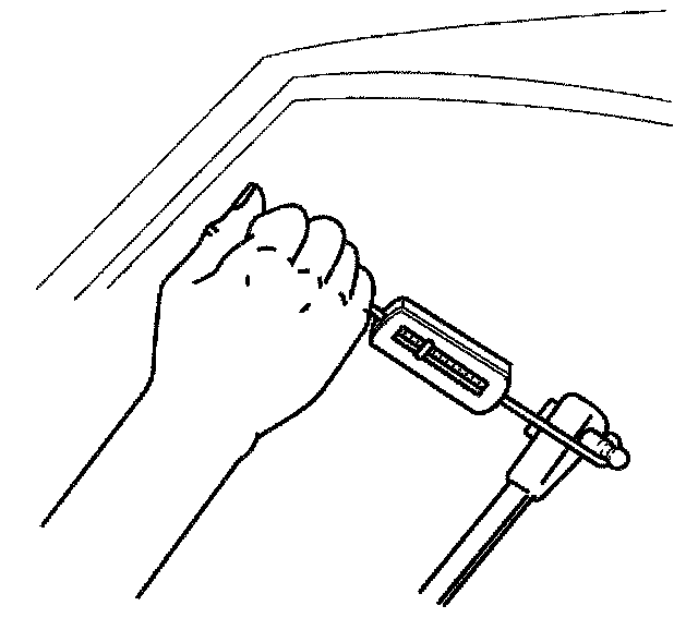 3. Attach a scale to the wiper arm attaching pin and measure the force required to lift the wiper arm perpendicular to the windshield to normal working height (height with the blade attached).