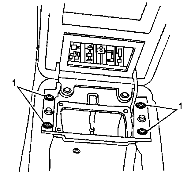 2. Remove the fasteners (1) retaining the console compartment door hinge to the console.