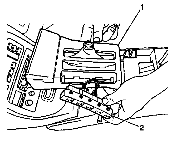 1. Install the trim plate or switch plate (2) to the vehicle.