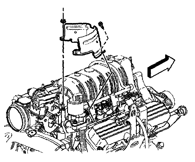 ^ Tighten the engine wiring harness shield bracket bolt and nut to 10 Nm (89 inch lbs.).