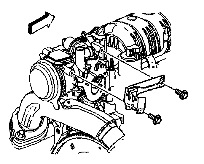7. Install the engine wiring harness shield bracket bolt and nut.