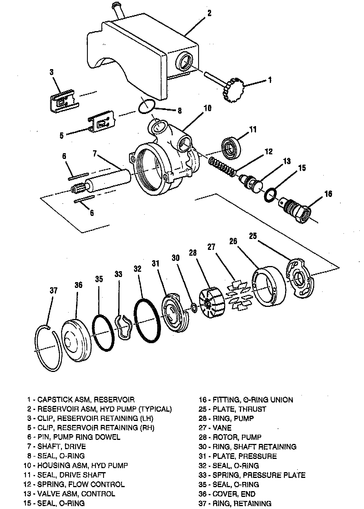 4. Fitting (16) into hydraulic pump housing assembly (10).