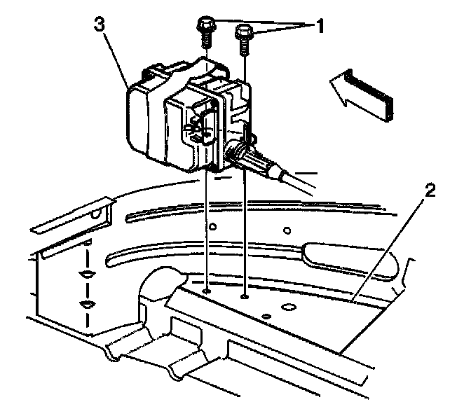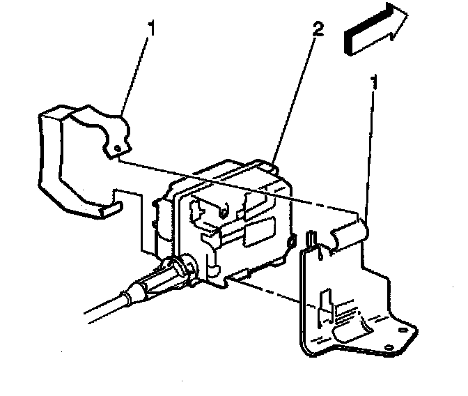 8. Remove the mounting bracket from the right front inner fender well (2).