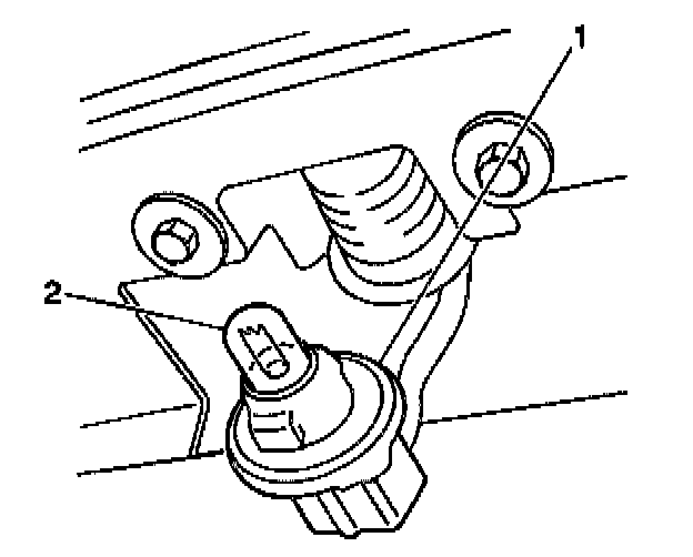 Install the bulb (2) to the socket (1) Align the tabs and turn the bulb (2) clockwise