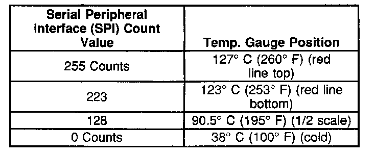 The fuel gauge SPI counts value to the fuel gauge (pointer) position ratio are included in the following table: