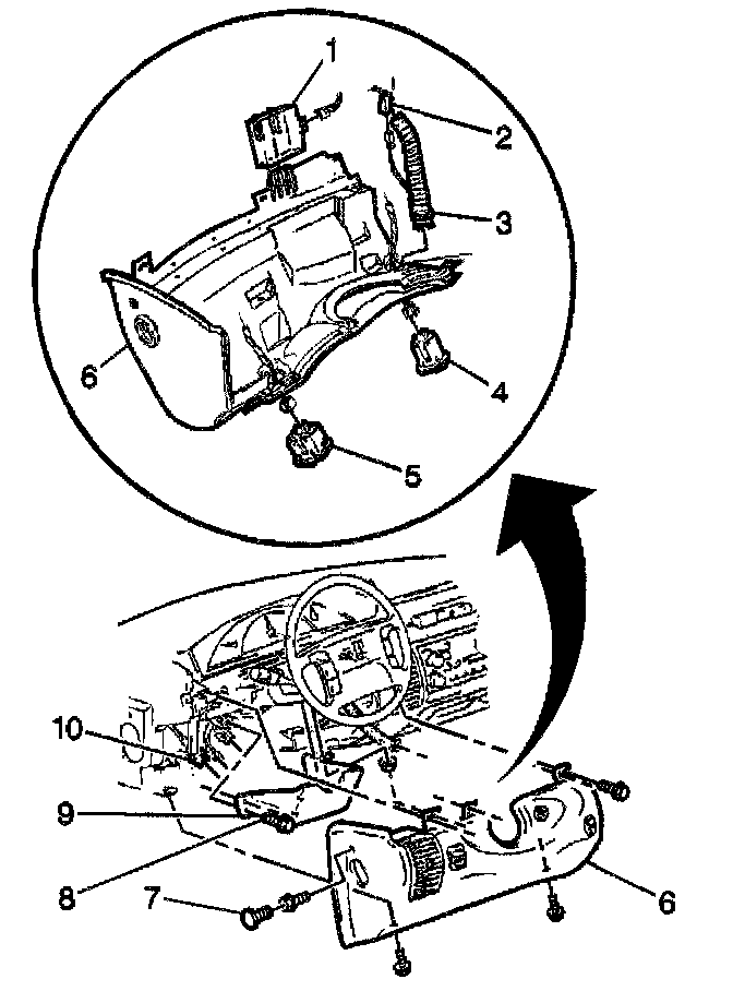 4. Remove the sensor (3) from the knee bolster.
