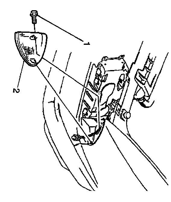 2. Remove the screw (1) that retains the cornering lamp (2) to the fender.