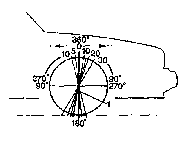 The caster is the tilting of the front steering axis, either forward or backward from the vertical (1). A backward tilt is positive, and a forward tilt is negative. If one wheel has more positive caster than the other, it will cause the wheel to pull toward the center of the vehicle. This will cause the vehicle to move or lead toward the side with least positive caster.