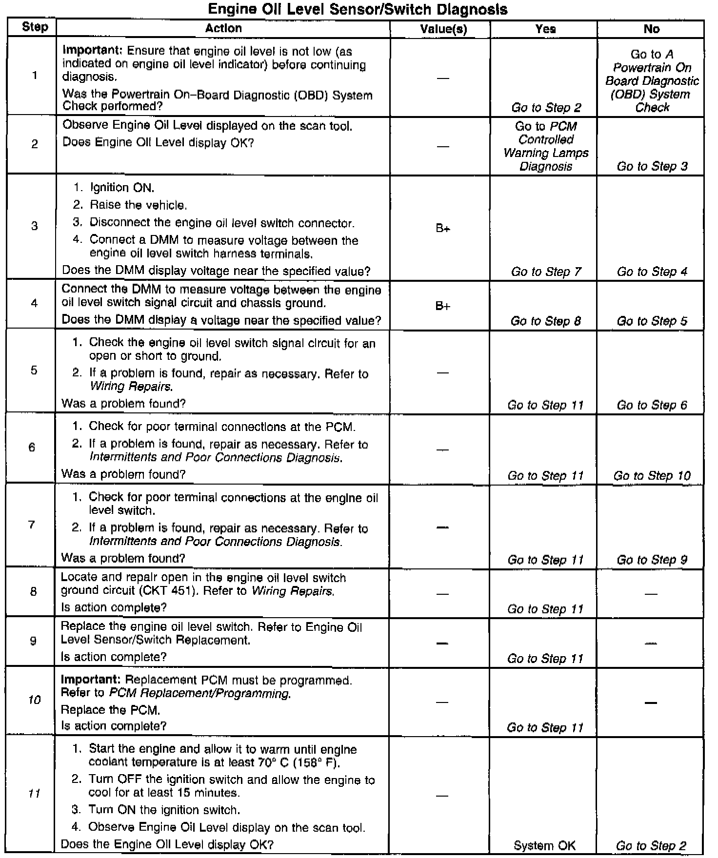 Engine Oil Level Sensor/Switch Diagnosis