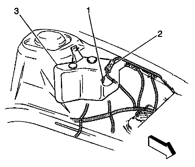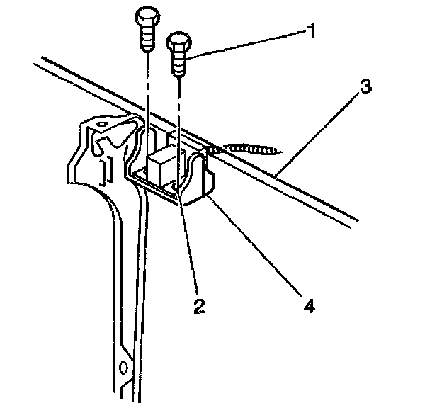 5. Remove the Inflatable Restraint Front End Discriminating Sensor (2) from the front end discriminating sensor bracket (4).