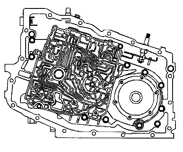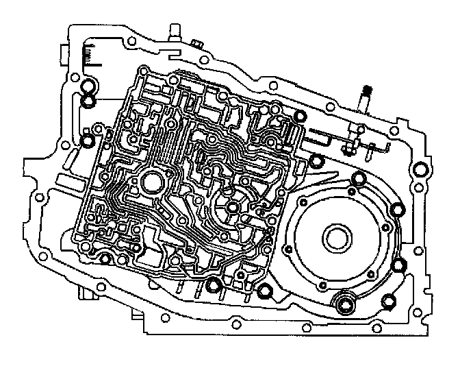 Notice: Install all the valve body bolts, then torque the bolts in a spiral pattern starting from the center, as shown. If you torque the bolts at random, you may distort the valve bores. This will inhibit valve operation.