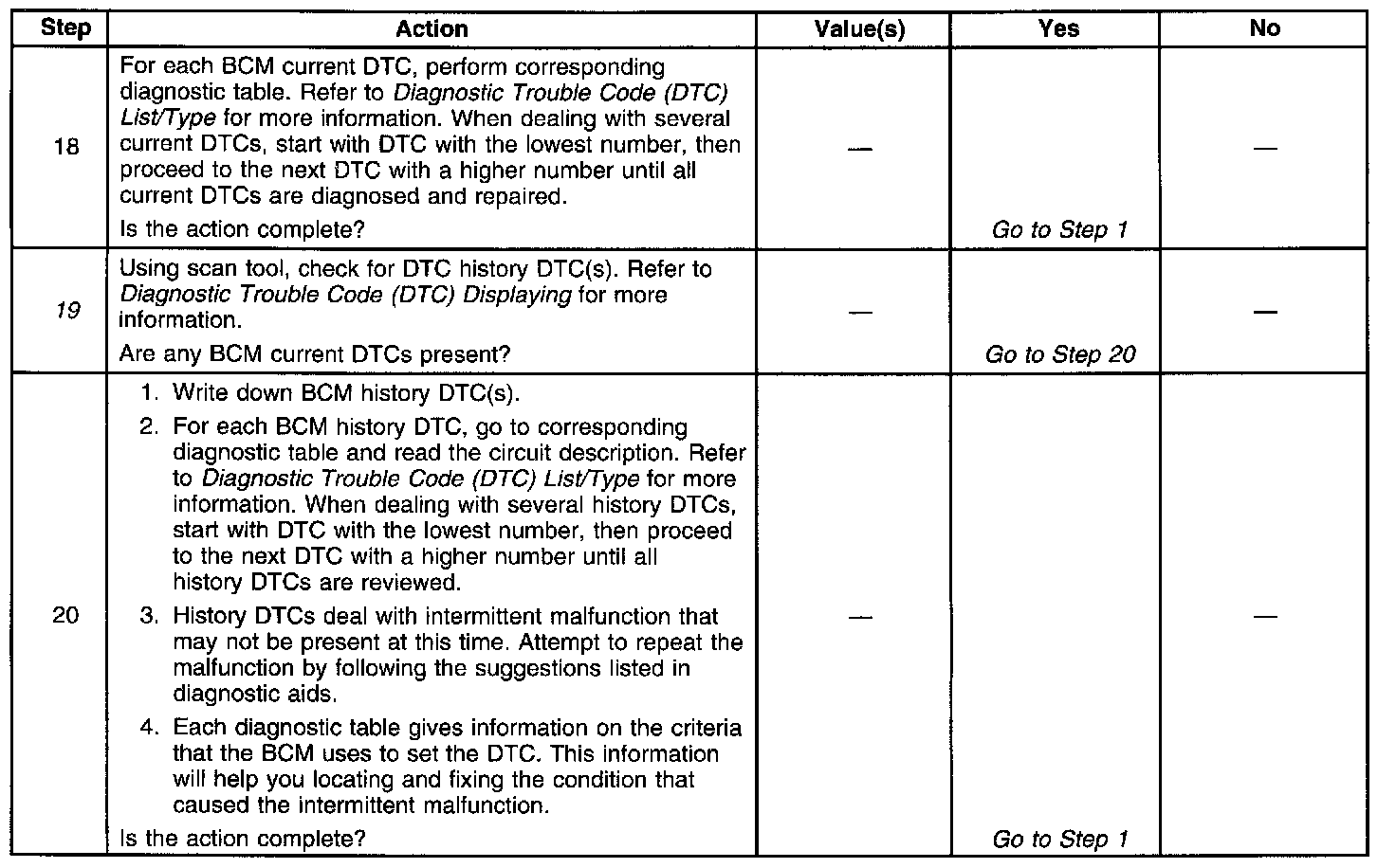 19. Checks for an intermittent BCM system malfunction.
