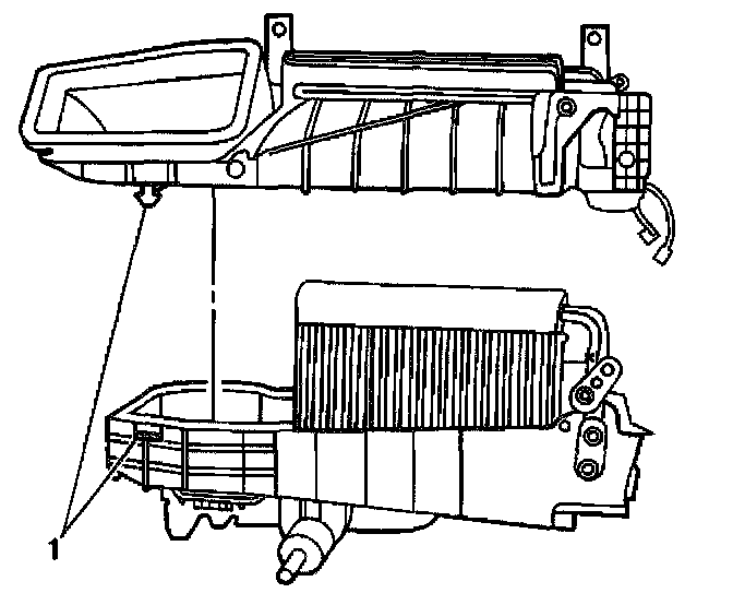 7. Align the guide (1) and attach the upper and lower HVAC module case.