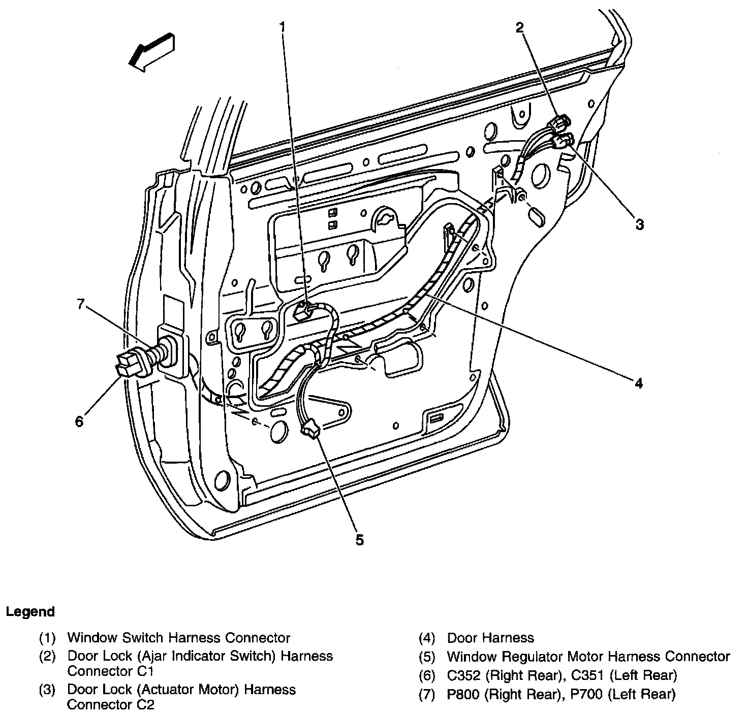 Right Rear Of Door Wiring Harness - Left Rear Similar: