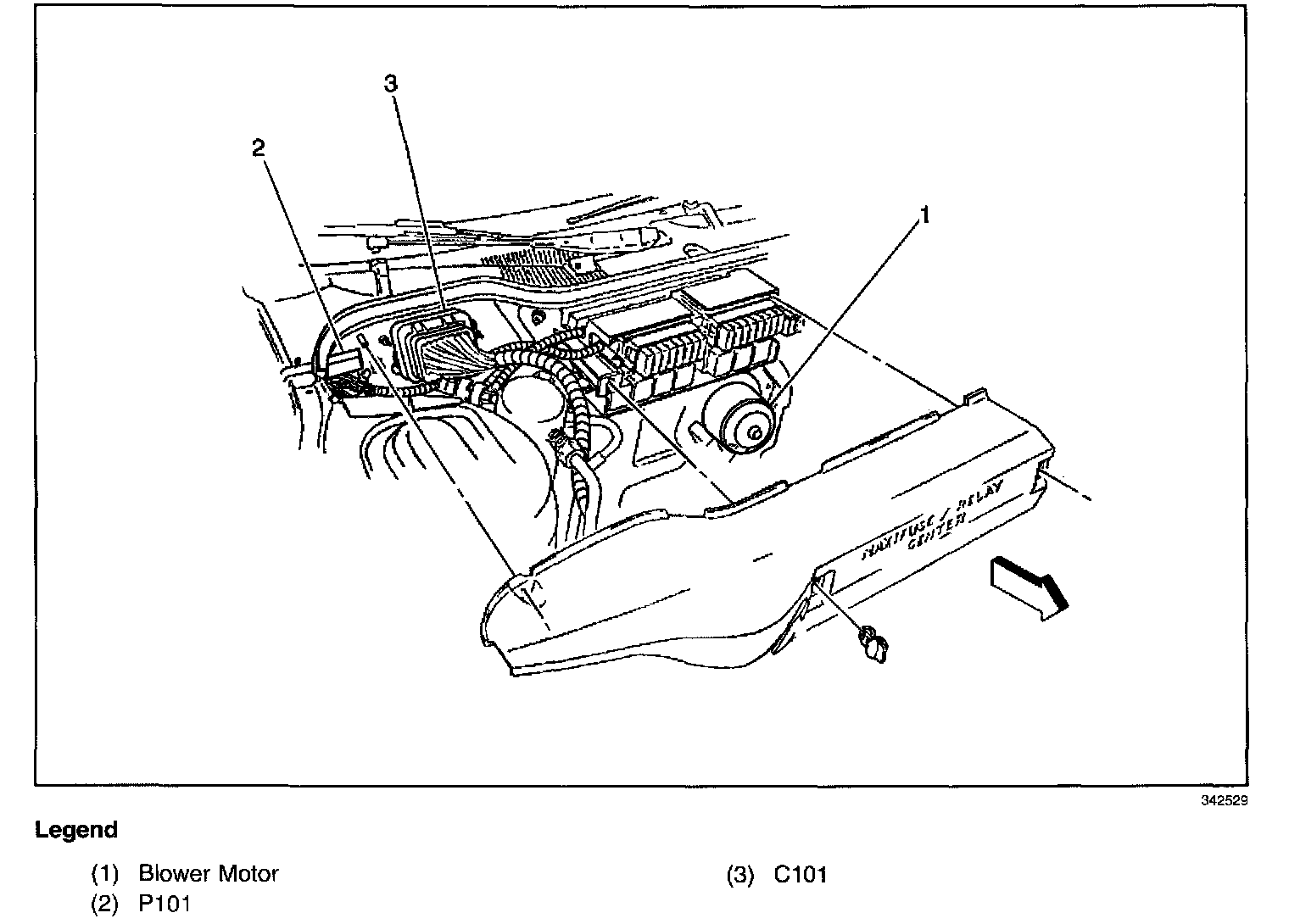 In the center rear of the engine compartment, below the left side MaxiFuse(R) block