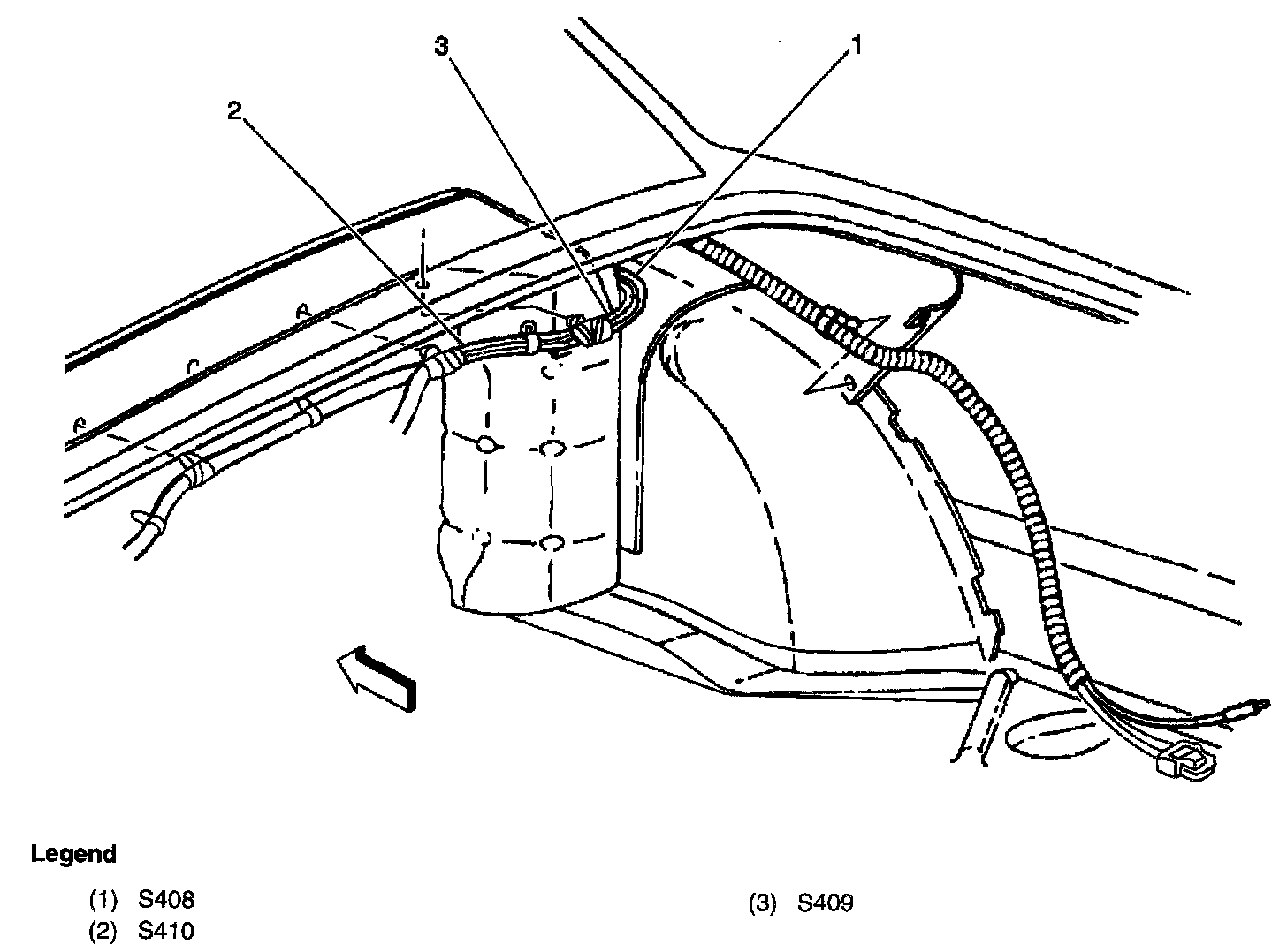 In the body harness, approximately 17 cm (6.7 in) from P400