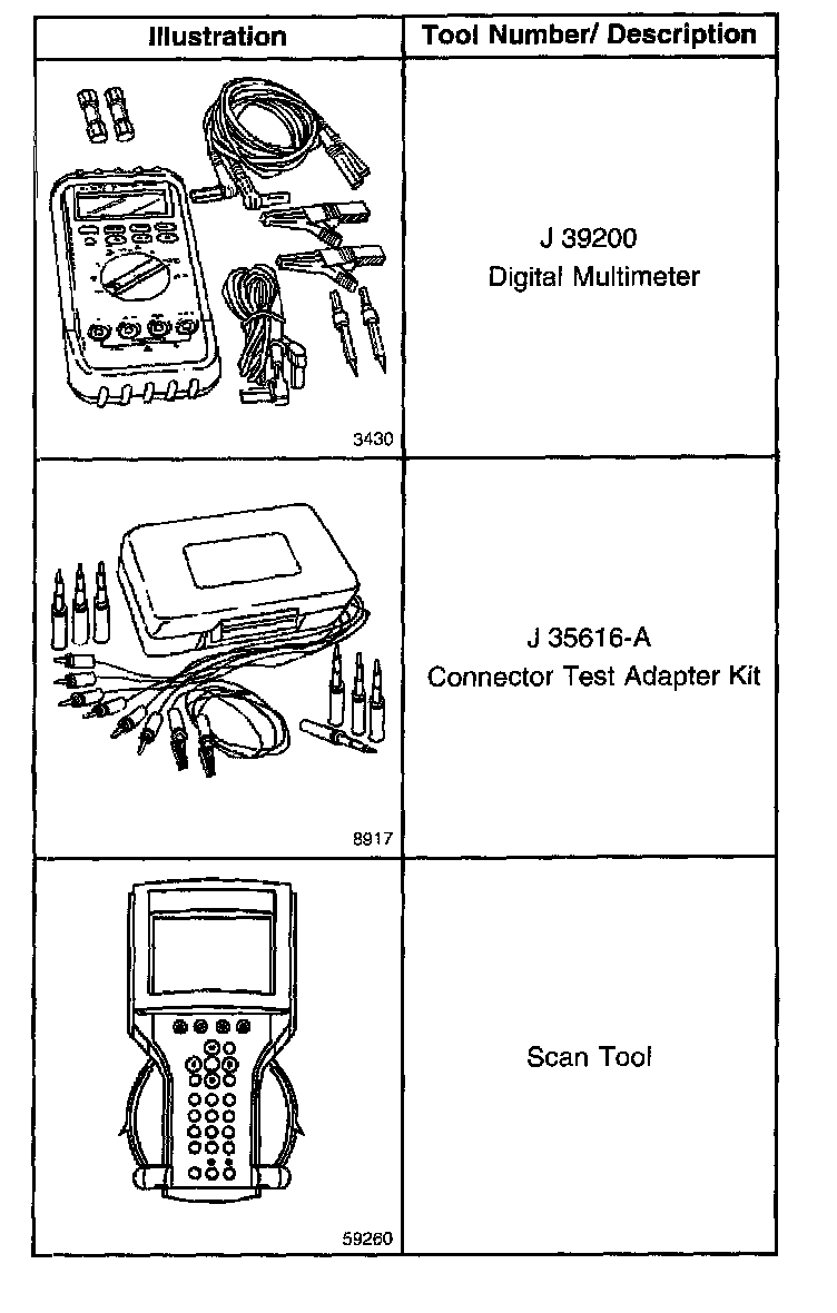 Ensure that you are familiar with the tools in this service category listed under the heading Special Tools. You should know how to measure voltage and resistance. Diagnosis requires proper use of the following tools: