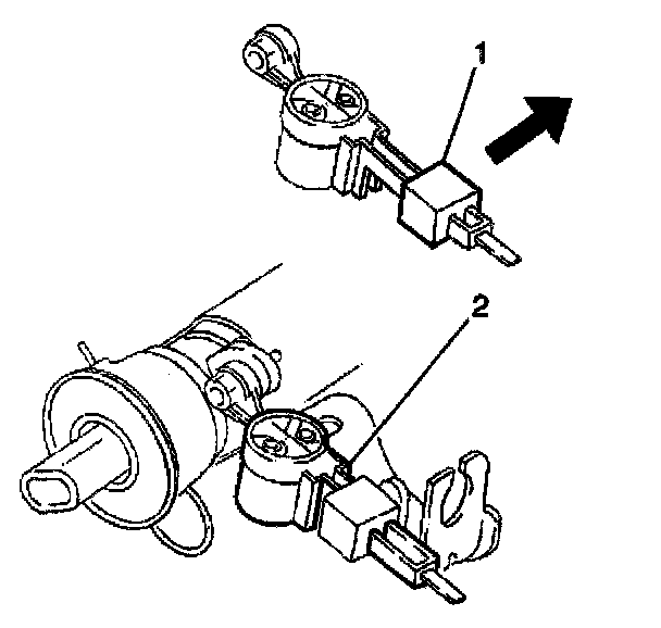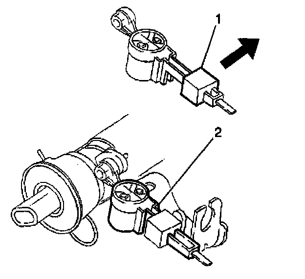 5. Remove the BTSI solenoid (2) from the steering column lower support using the J 38778 or the equivalent.