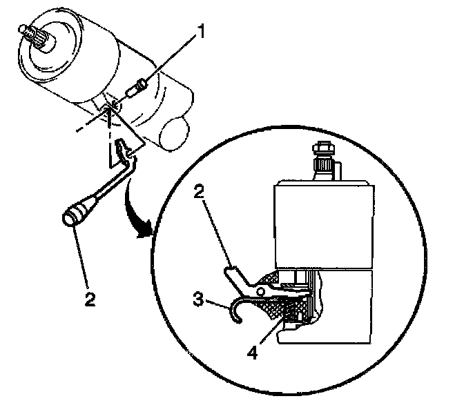 2. Install the shim over the top of the spring (4). If problems occur while installing the shift lever over the spring, you may use a shim (3).