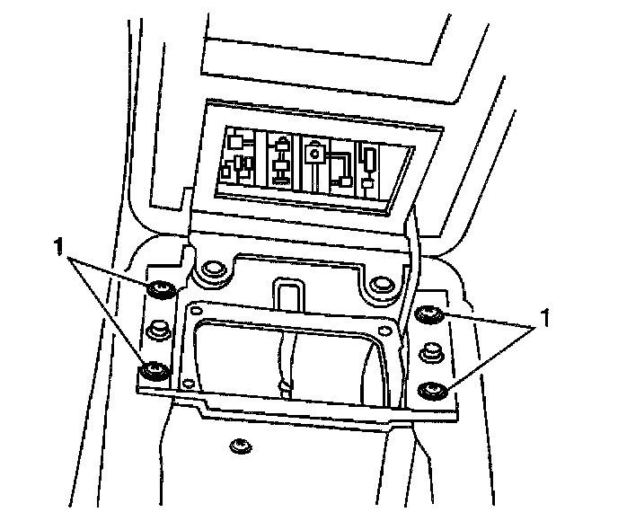 2. Remove the fasteners (1) retaining the console compartment door hinge to the console.