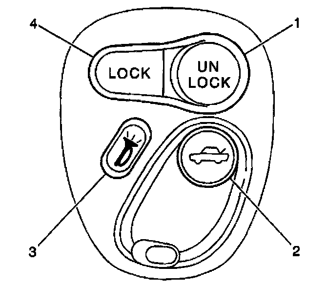 2. Press and hold the transmitter LOCK (4) and UNLOCK (1) buttons simultaneously for 8 seconds.