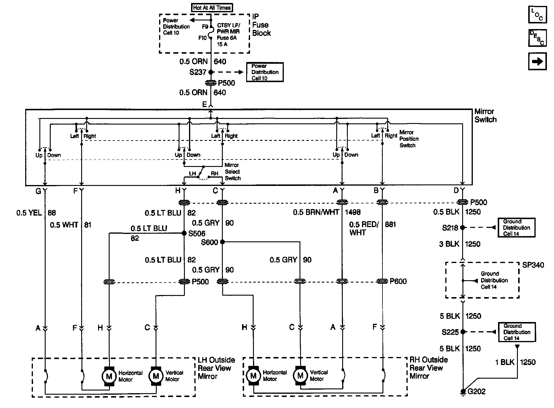 Outside Mirror Schematics: Oldsmobile Without Memory Mirrors: