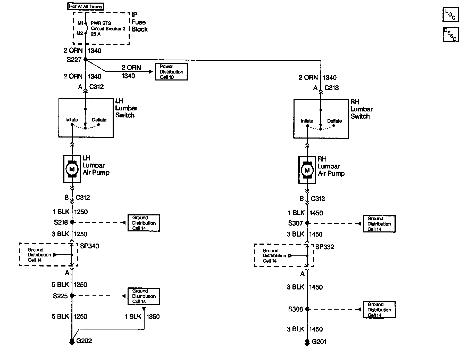 Lumbar Support Schematics (Oldsmobile W/AL2): Lumbar Support: