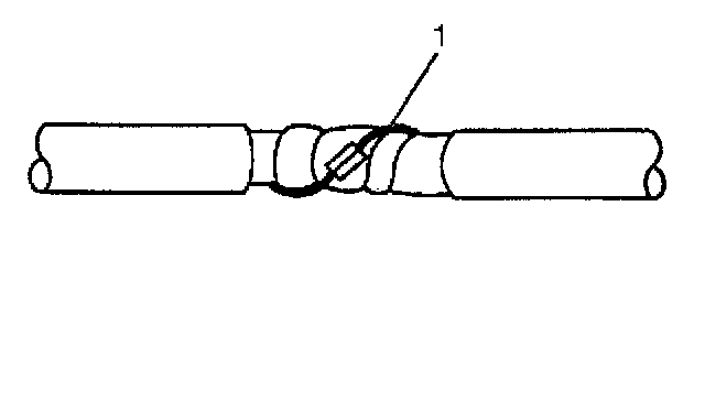 ^ Use caution not to wrap the drain wire in the tape (1).