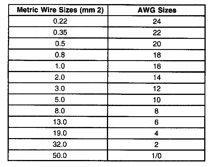 Wire Size Conversion Table: