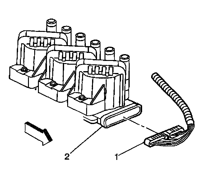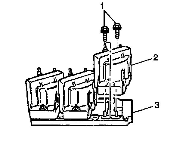 5. Remove the 6 screws (1) securing the coil assemblies (2) to the ignition control module.
