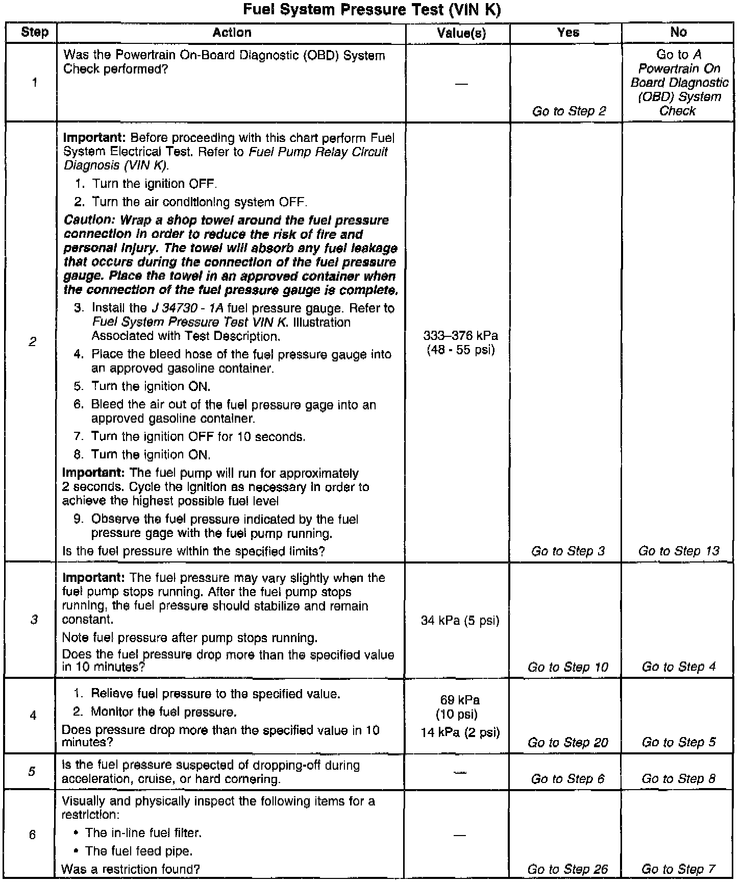 14. This test determines if the high fuel pressure is due to a restricted fuel return pipe or if the high fuel pressure is due to a faulty fuel pressure regulator.