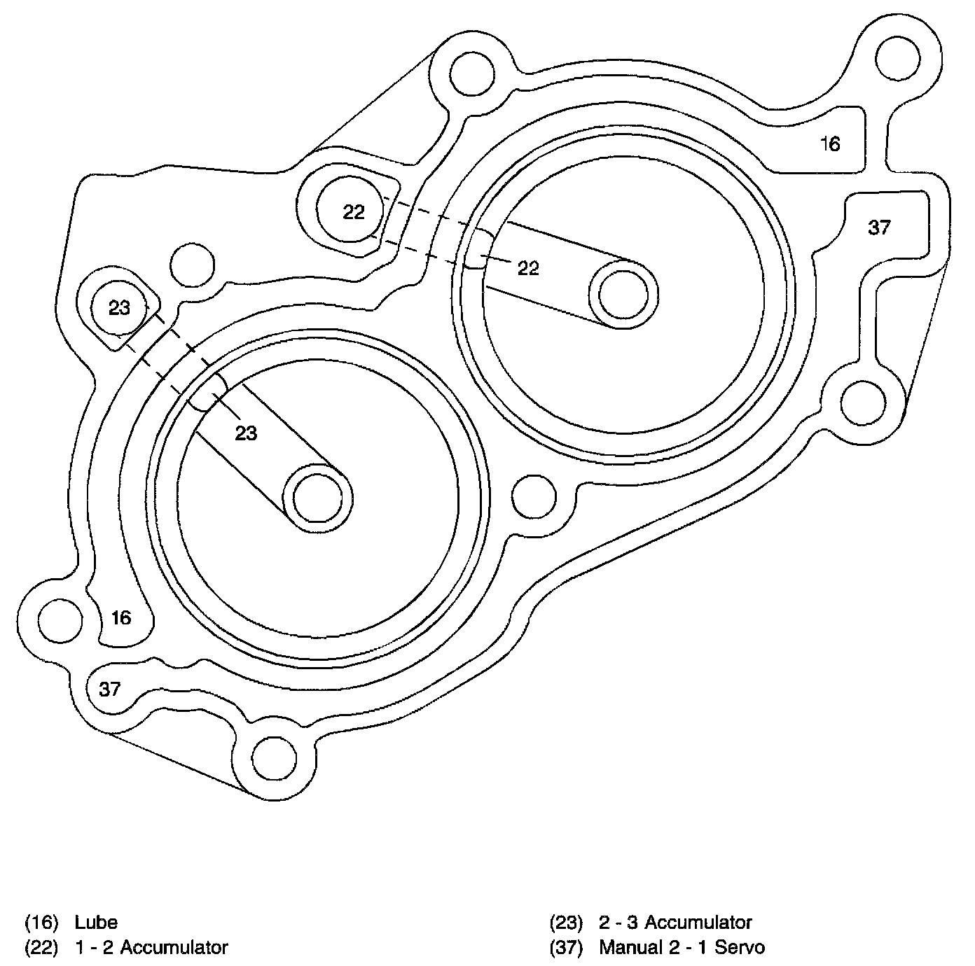 1-2 and 2-3 Accumulator Housing Fluid Passages