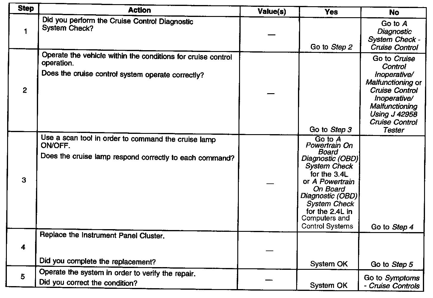 Cruise Control - CRUISE Indicator Inoperative