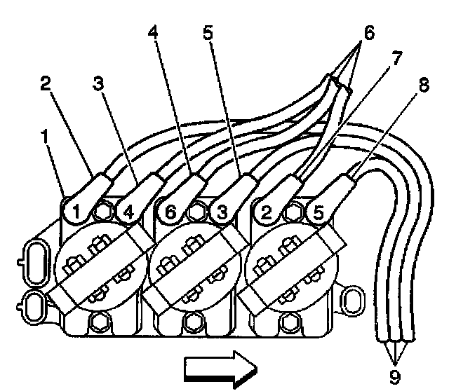 7. Remove the secondary ignition wires from the spark plugs. Refer to Spark Plug Wire Harness Replacement in Diagrams/Diagnostic Aids.