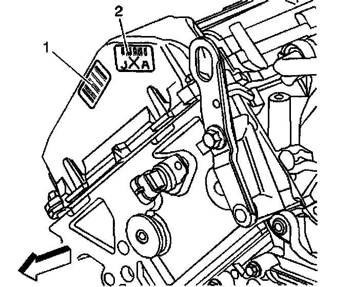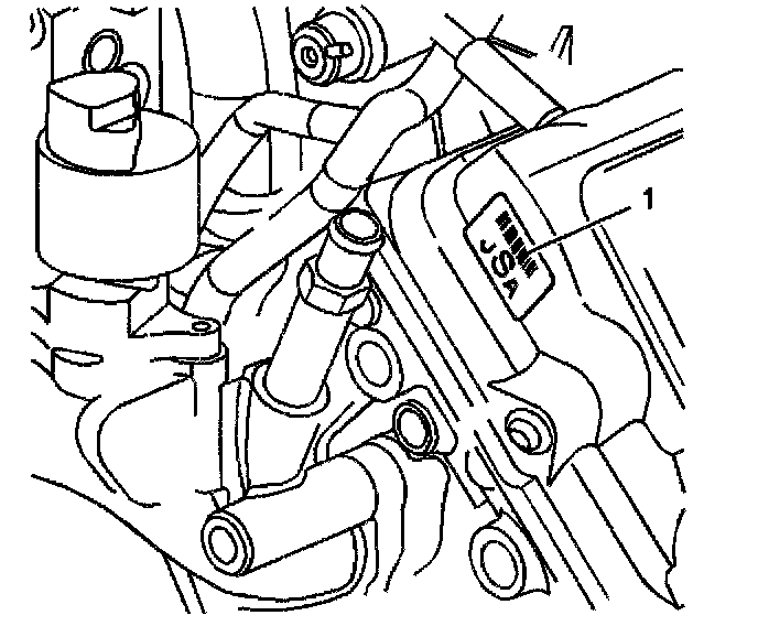 The Vehicle Identification Number (VIN) Derivative is located on the right front side of the engine block (1) and is a nine digit number stamped or laser etched onto the engine at the vehicle assembly plant. If reading the identification number the following information can be obtained: