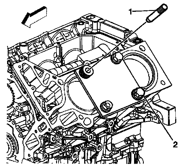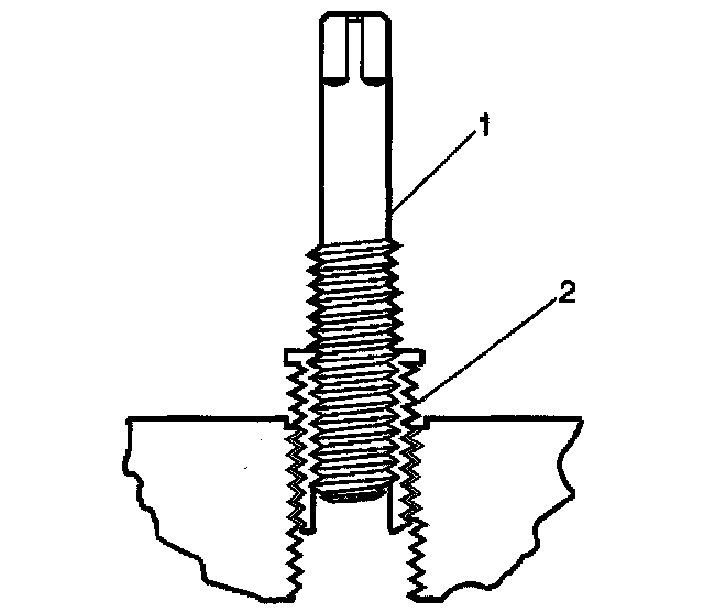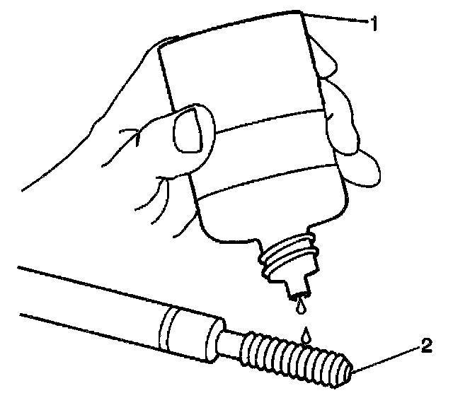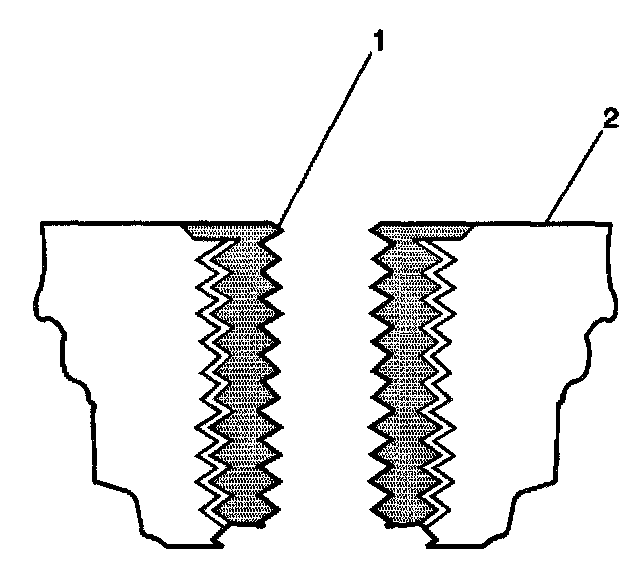12. Apply threadlock Loctite(R) 277, J42385-109 (1), or equivalent to the insert OD threads (2).