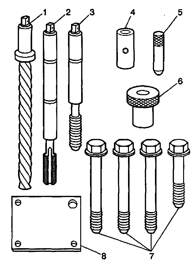 Important: The use of a cutting type fluid GM P/N 1052864, WD 40(R), or equivalent is recommended when performing the drilling and tapping procedures. Driver oil MUST be used on the installer driver tool. The tool kits are designed for use with either a suitable tap wrench or drill motor.